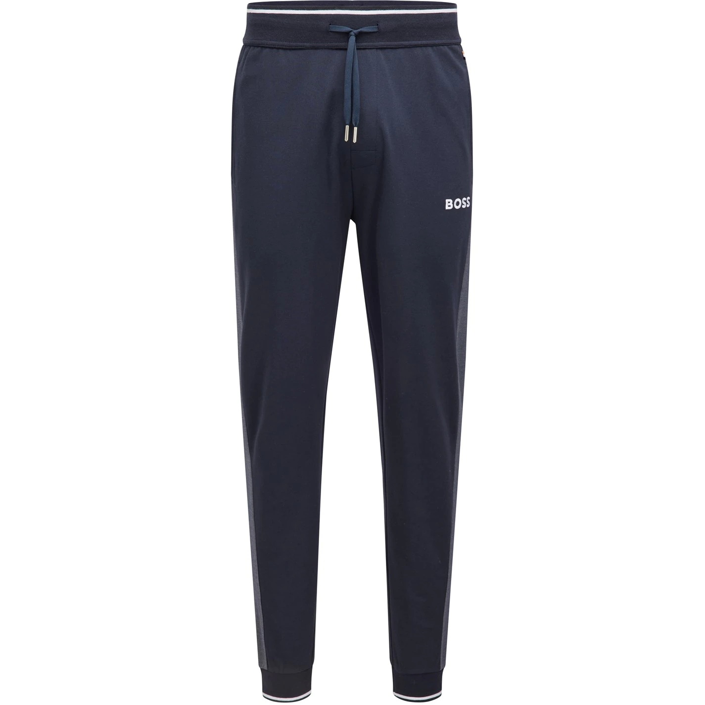 The Boss Bodywear Tracksuit Joggers are a great addition to your loungwear wardrobe, crafted with a wide elasticated waistband coupled with an elasticated trim to the ankle cuffs and an adjustable drawcord provides a secure fit. Side slip pockets provides ample space for your essentials, a solid colouring coupled with the Boss branding completes the look.