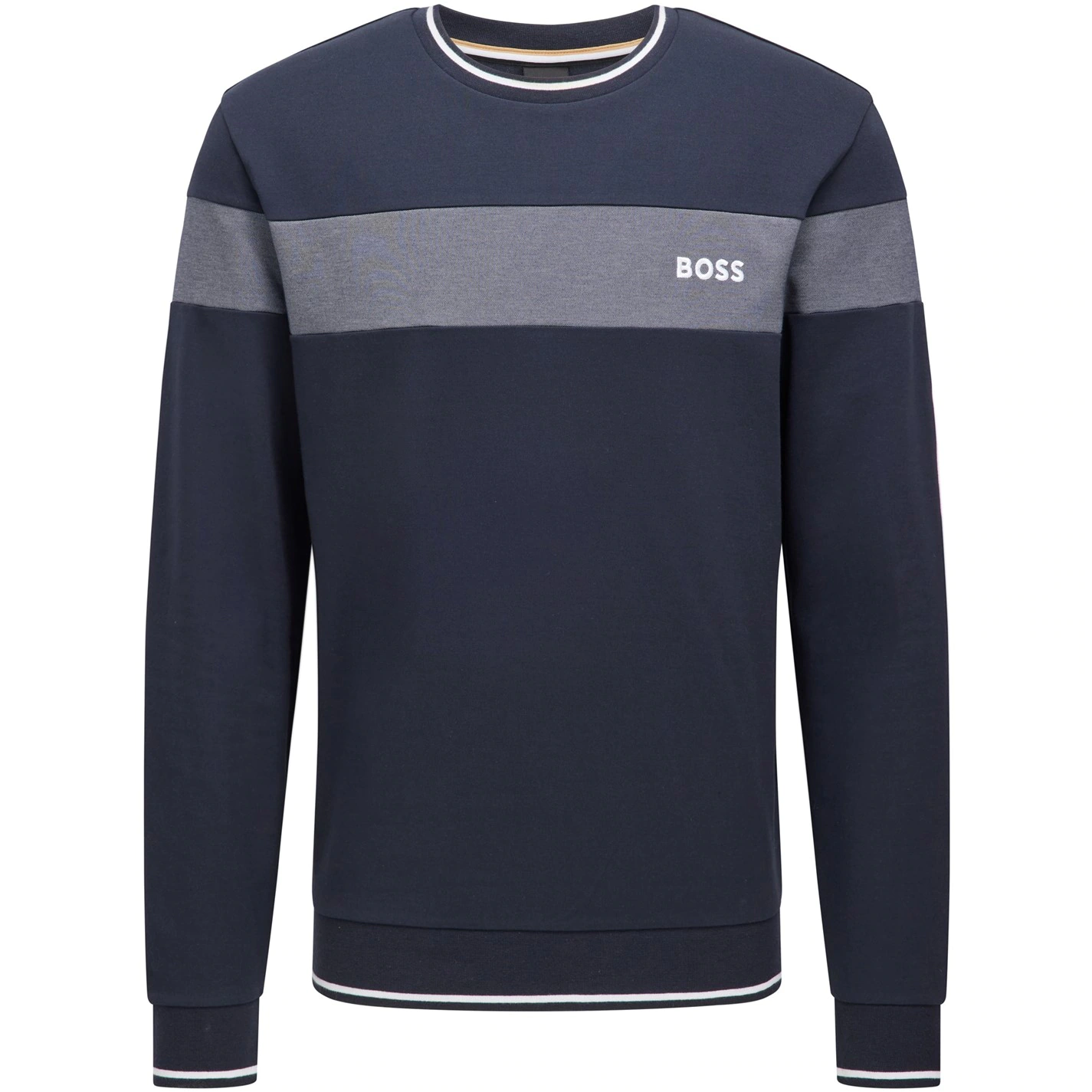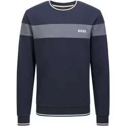 Revamp your premium daily collection with this Tracksuit Sweatshirt from Boss Bodywear. Crafted in a soft cotton material, this casual sweatshirt is constructed in a pullover style and features a crew neckline, long sleeves and ribbed trims for a comfortable wear. Decorated in a block colour design throughout, the look is finished with contrasting tipped trims and the signature brand’s logo embroidered to the chest for brand recognition. 70% Cotton, 30% Polyester. Machine washable at 40 degrees.
