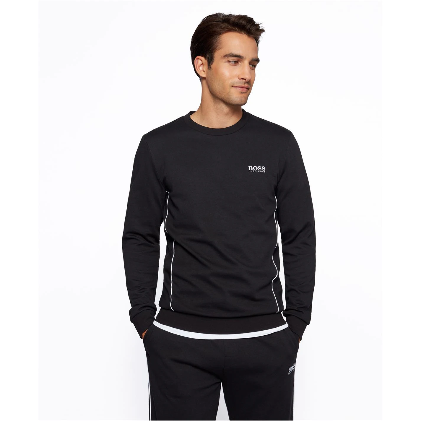 Update your collection with this BOSS Tracksuit Sweatshirt. Crafted with a ribbed crew neckline and long sleeves for a classic look, it features elasticated hems for a comfortable fit. This sweatshirt is a solid colouring throughout designed with a signature logo and is complete with BOSS branding.