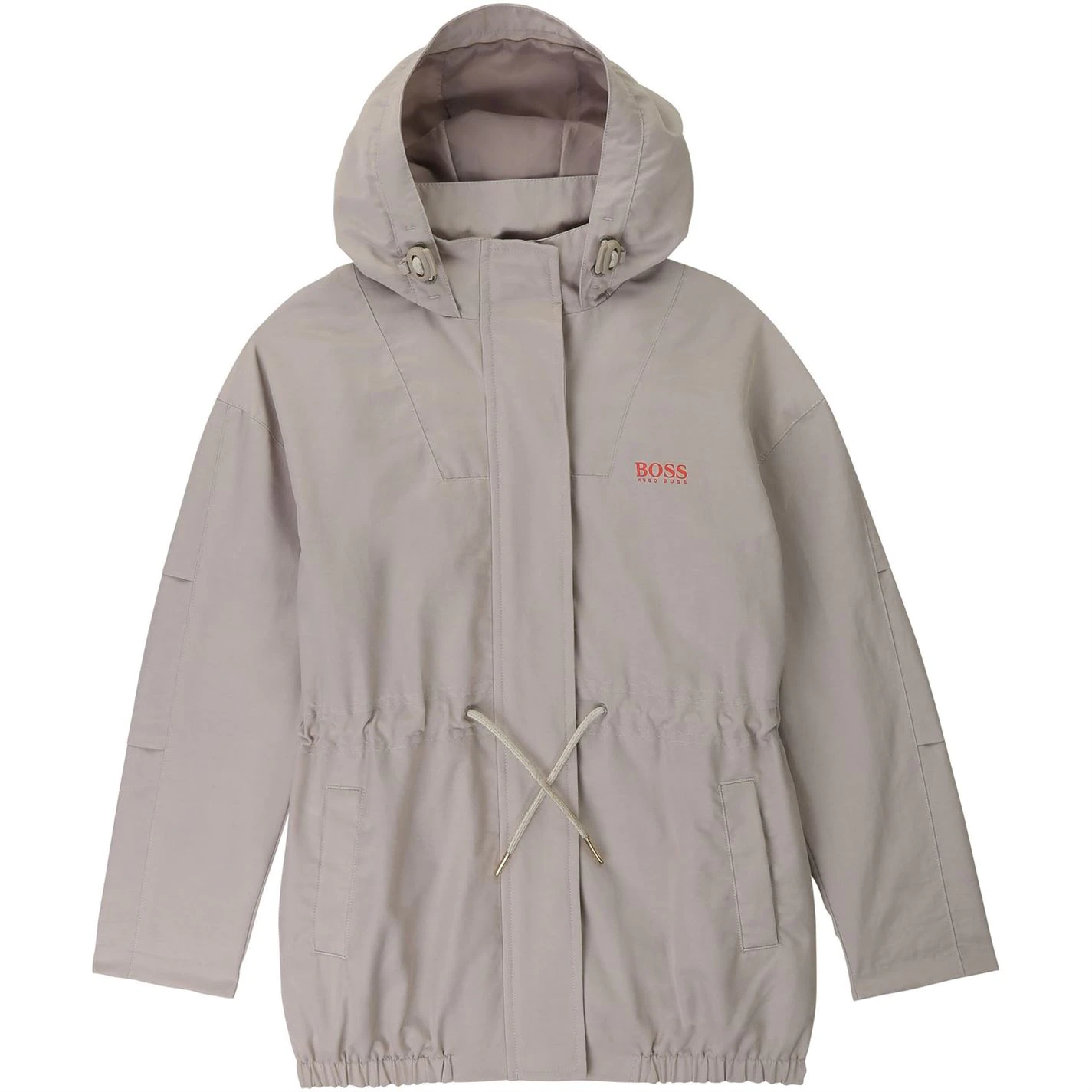 This BOSS mid-length parka is perfect for protecting you from the weather. The waterproof twill design and comfortable hood will protect you from the rain. The hood and the waistband feature adjustable drawstrings.