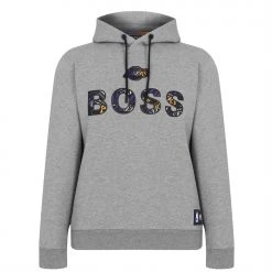 Crafted from a Cotton rich blend for comfort, this stylish hoodie form Hugo Boss will bring an urban street appeal into your every day casual wear. Whether your an NBA fan or someone looking for a sporty look, the Bounce Hoodie from Hugo Boos comes featuring a fixed draw-cord hood, long sleeves, ribbed hems and a regular overall fit. Finished with a team badge and Boss branding. 83% cotton – 14% polyester – 3% elastane. Machine washable.