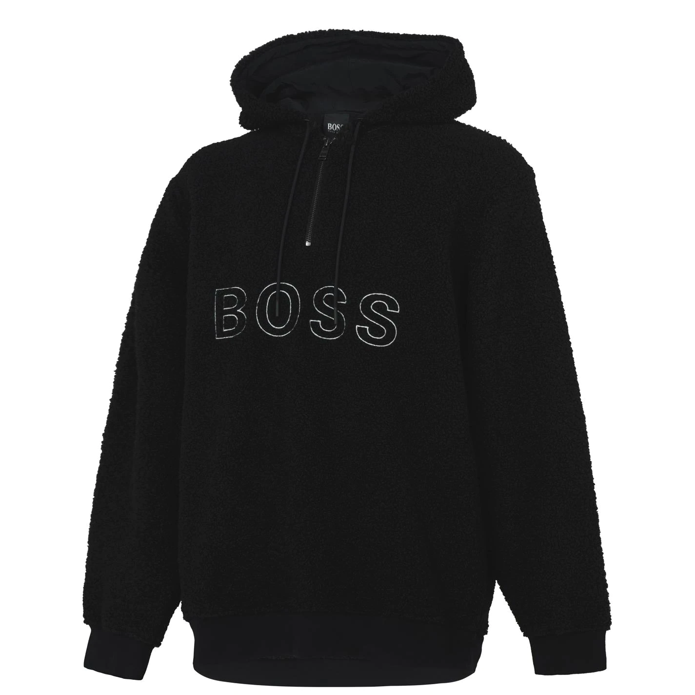Update your casual collection with the Boss Zetedy Hoodie. Crafted from a textured boucle with ribbed trims and a quarter zip fastening, the design features embroidered branding at the chest to help achieve instantaneous brand appeal. Complete with an adjustable drawstring hood as a practical touch.