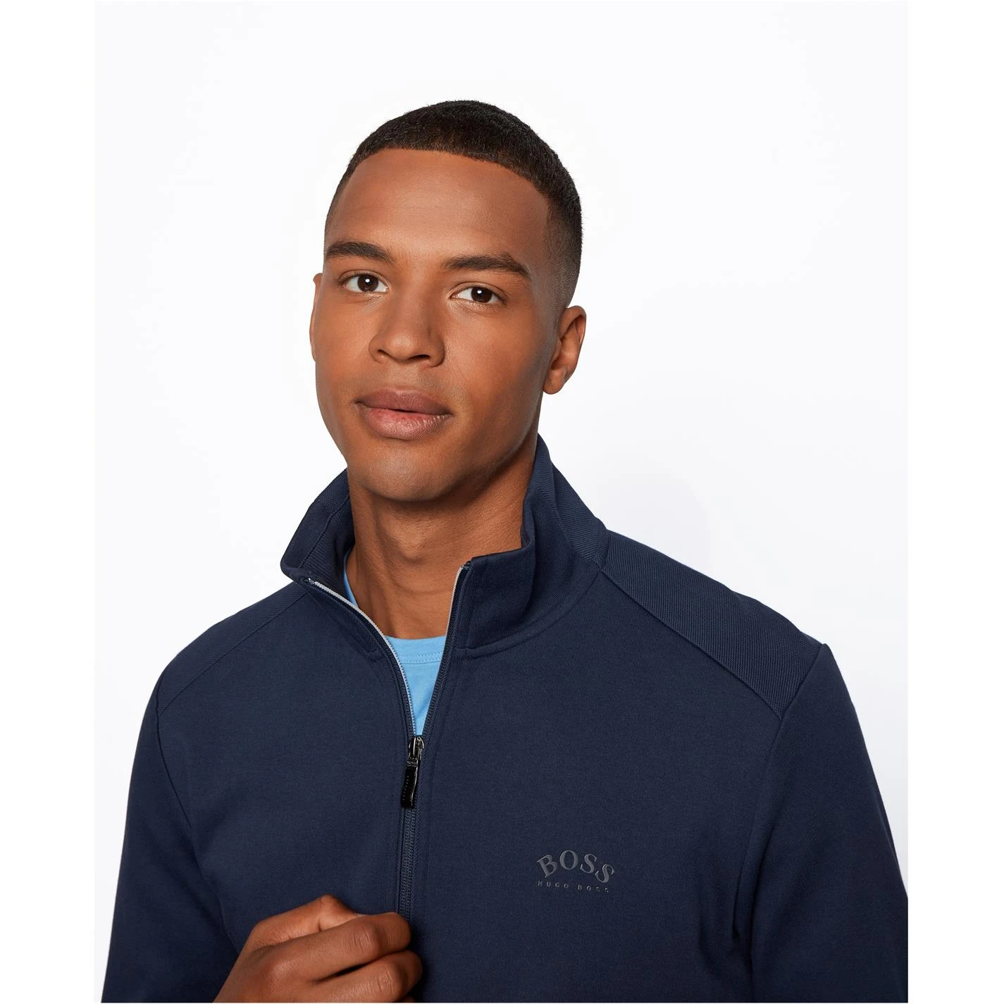 Update your casual wear with this Zip Sweatshirt brought to you by Boss Athleisure. Constructed with a full-zip fastening, leading to a high neck, this long sleeve sweatshirt features two classic open pockets and a zip fastened pocket for keeping any essentials secure. The piece is finished with the brand’s logo pressed to the chest for a designer touch. Main: 54% polyester, 46% cotton. Collar: 59% cotton, 39% polyester, 2% elastane. Machine washable.