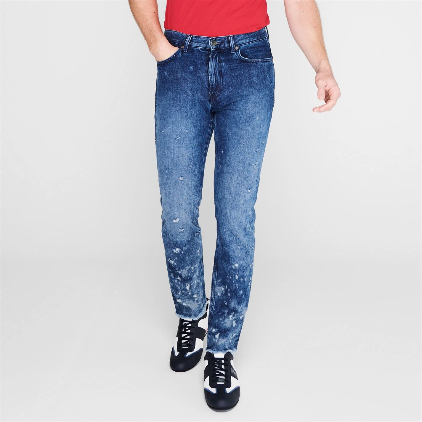 Update your collection with these Hugo 322 Ripped Jeans. Crafted with a button fastening waist and zip up fly, they feature belt loops and are a classic 5 pocket style. These jeans are a distressed design with a signature logo and are complete with Hugo branding.
