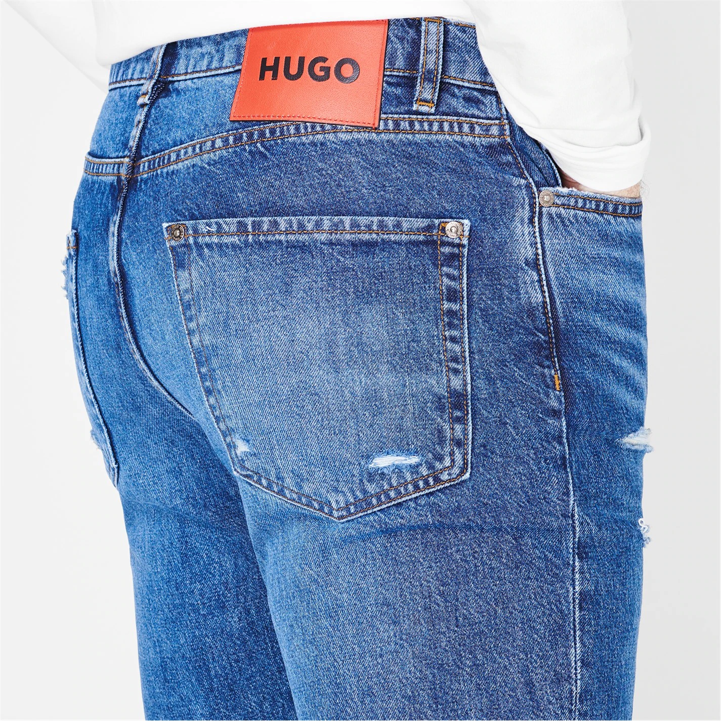 Elevate your casual wear with these 677 Jeans by Hugo, crafted in cotton-rich denim for comfort and shape retention. Cut in a regular fit, the pair feature a classic five pocket styling, belted waistband with button fastening and a zipped fly. These jeans have undergone a special finish process with several rips cut into the fabric for a distressed look and the iconic Hugo logo patch embroidered on the back waist to complete the look.