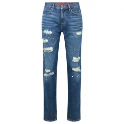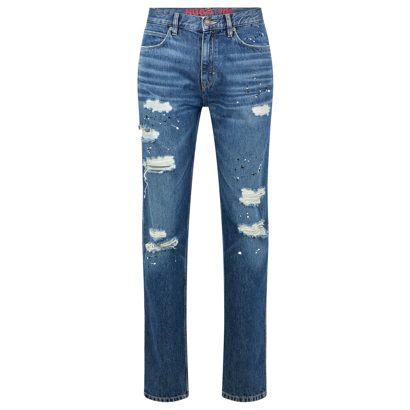 Enhance your collection with these HUGO 708 Rip Slim Jeans. Constructed with a button fastening waist and a zip up fly for a secure fit, they feature belt loops and five pockets for a classic look. These jeans are a solid colouring throughout with ripped detailing and are complete with HUGO branding.