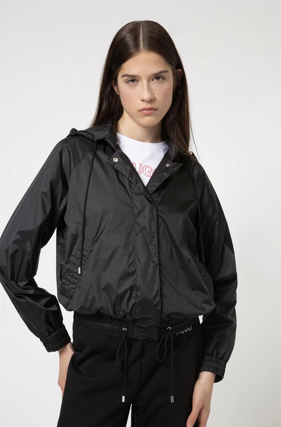 Complete your everyday ensemble with the Hugo Afalias1 Jacket. The design features ribbed trims and a central popper fastening for a classic look with the detachable hood providing a practical touch. Made from a lightweight fabric for ease of movement, the design is complete with two side pockets and a mesh lining.