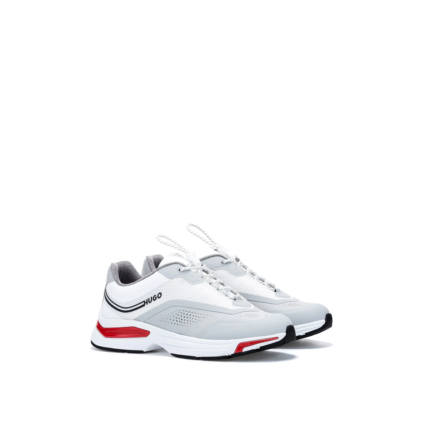 Upgrade your athletic pairs with the Axel Runners from hugo. Designed with a structured mesh upper characterised by synthetic layered detailing, this pair provides a dynamic and athletic style thanks to the toggled laces. Sat on a durable and lightweight EVA midsole with a rubber base for traction, these runners are finished with contrasting details and the Hugo branding.