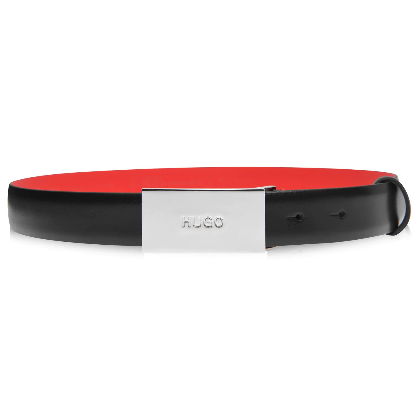 Keep it casual with this Baldwin Belt from Hugo. A plain and simple style that yields a minimalistic effect, this belt has been made from leather with a silver-toned belt buckle and red lining that boasts the iconic branding. You do not want to miss out on this one.