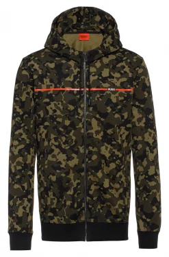 Refresh your collection with this HUGO Camo Hoodie. Constructed with full zip fastening and long sleeves with ribbed trims for a comfortable fit, it features a hooded neckline and two hand pockets for a classic look. This hoodie is an all over print design with a signature logo and is complete with HUGO branding.
