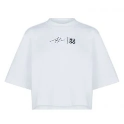 Update your collection with this HUGO Cropped T Shirt. Crafted with short sleeves and a ribbed crew neckline for a classic look, it features elasticated hems for a comfortable fit. This t shirt is a solid colouring throughout designed with a signature logo to the chest and is complete with HUGO branding.