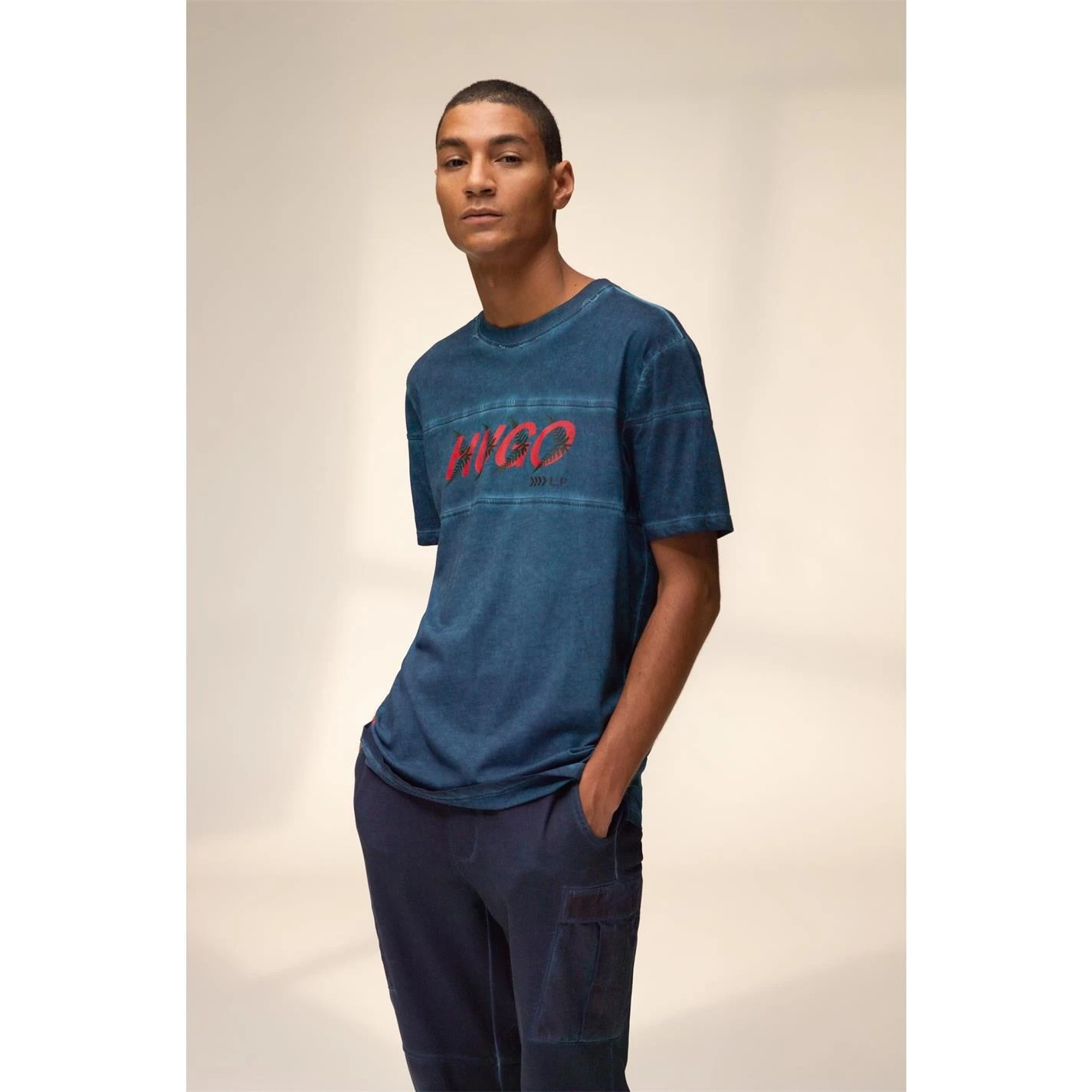 Enhance your collection with this HUGO Dappel Short Sleeve T Shirt. Constructed with short sleeves and a ribbed crew neckline for a classic look, it features elasticated hems for a comfortable fit. This t shirt is a solid colouring throughout designed with a signature logo and is complete with HUGO branding.