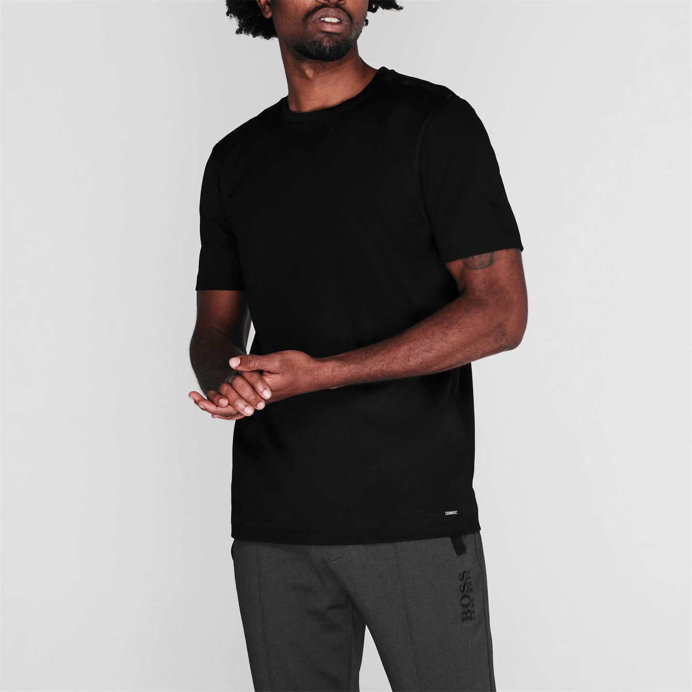 The Dayu Mercerized T Shirt from HUGO is a clean cut t-shirt crafted in a super soft Cotton for comfort and quality.This Mercerized T-shirt features short sleeves, a crew neckline and is given the sporty finish with understated tonal taping along the shoulders. Finished with HUGO recognition, this t-shirt contains an engraved metal HUGO badge to the hem for subtle branding.