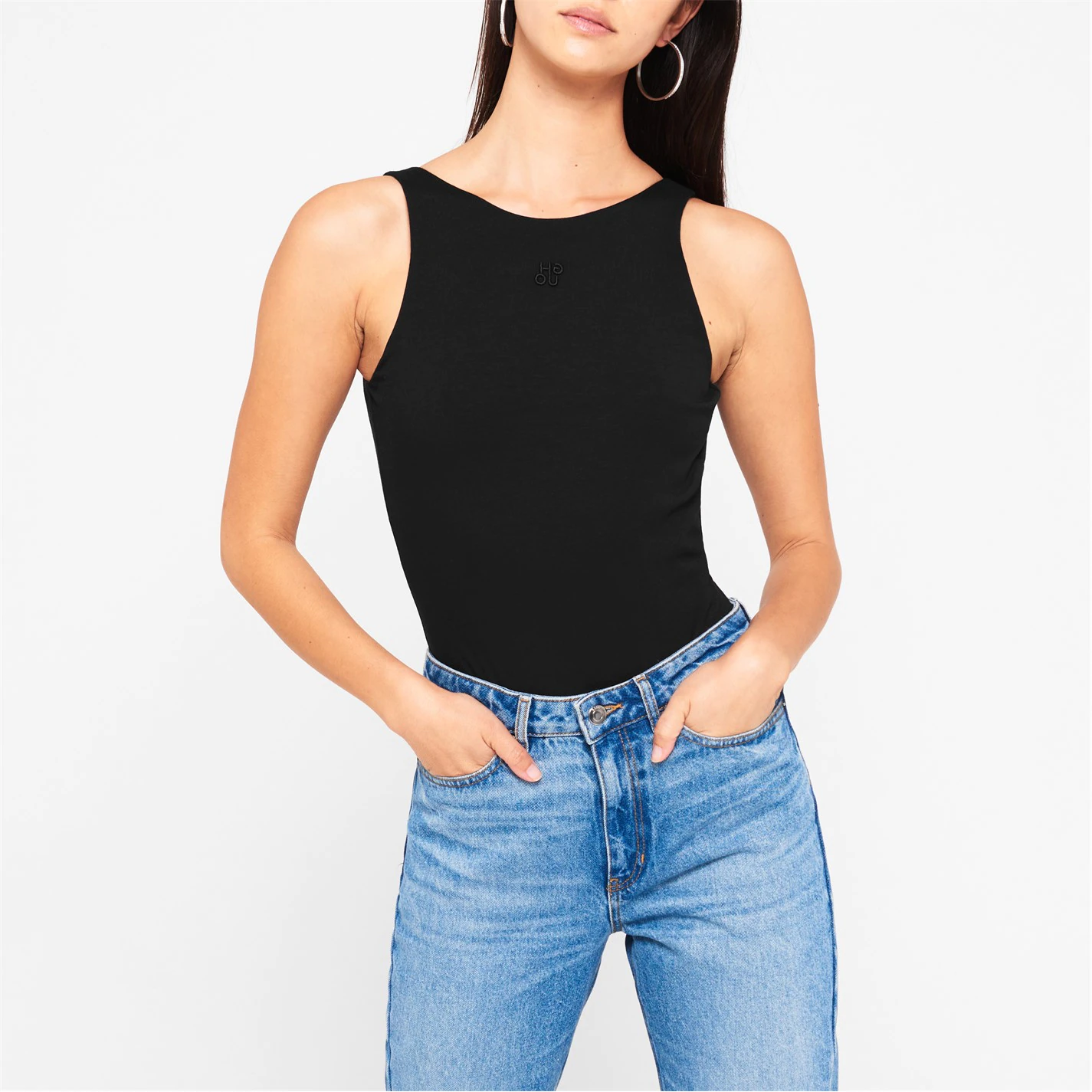 Elevate your casual attire with the Decarina Bodysuit by Hugo, this garment is made from organic cotton for a reduced impact on the environment and offers comfort lasting all-day. The bodysuit features a crew-neckline, standard straps, open back design and popper fastening. The look is completed by the signature Hugo embroidered to the chest.