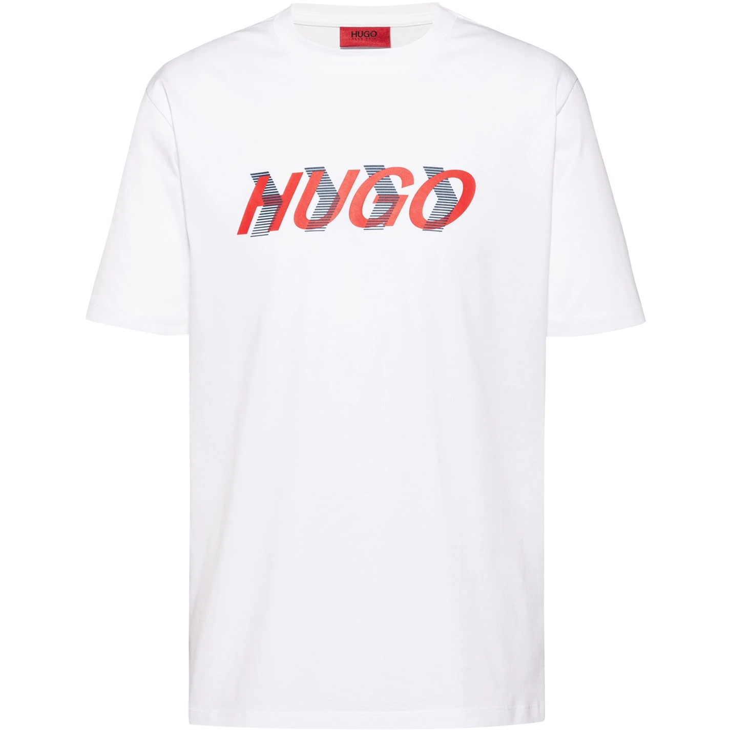 Refresh your collection with this HUGO Dicag T Shirt. Constructed with short sleeves and a ribbed crew neckline for a classic look, it features elasticated hems for a comfortable fit. This t shirt is a solid colouring throughout designed with a signature logo and is complete with HUGO branding.