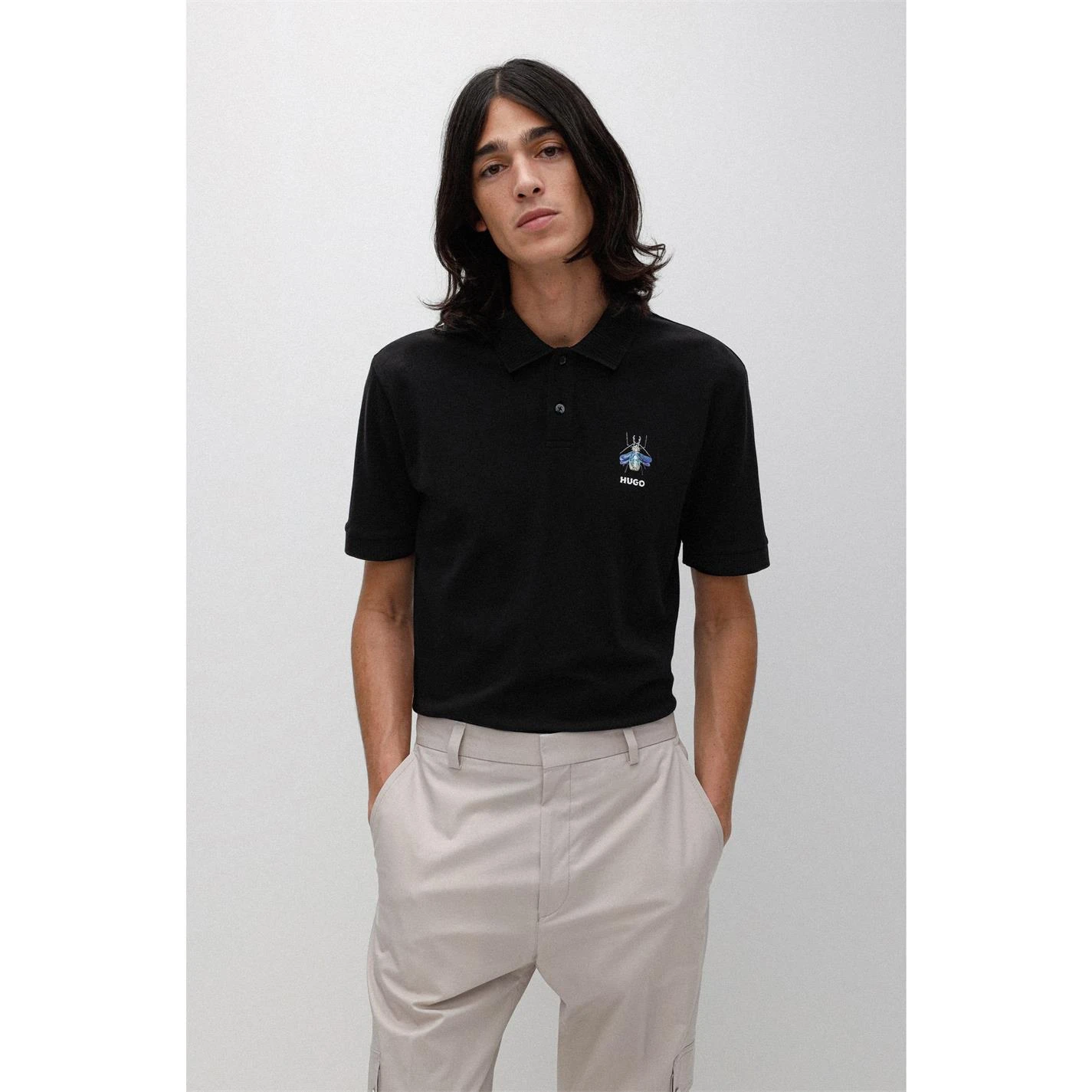 Elevate your collection with this HUGO Dichio Small Bug Polo Shirt. Crafted with a folded collar and a two button placket for a secure fit, it features short sleeves with comfortable ribbed trims for a classic look. This polo shirt is designed with a signature logo and is complete with HUGO branding.