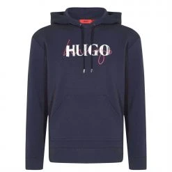 Update your collection with this HUGO Double Logo OTH Hoodie. Crafted in a pullover style with long sleeves and ribbed trims for a comfortable wear, it features a drawstring adjustable hood and a kangaroo pocket for a classic look. This hoodie is a solid colouring throughout designed with a signature logo printed across the chest and is complete with HUGO branding.
