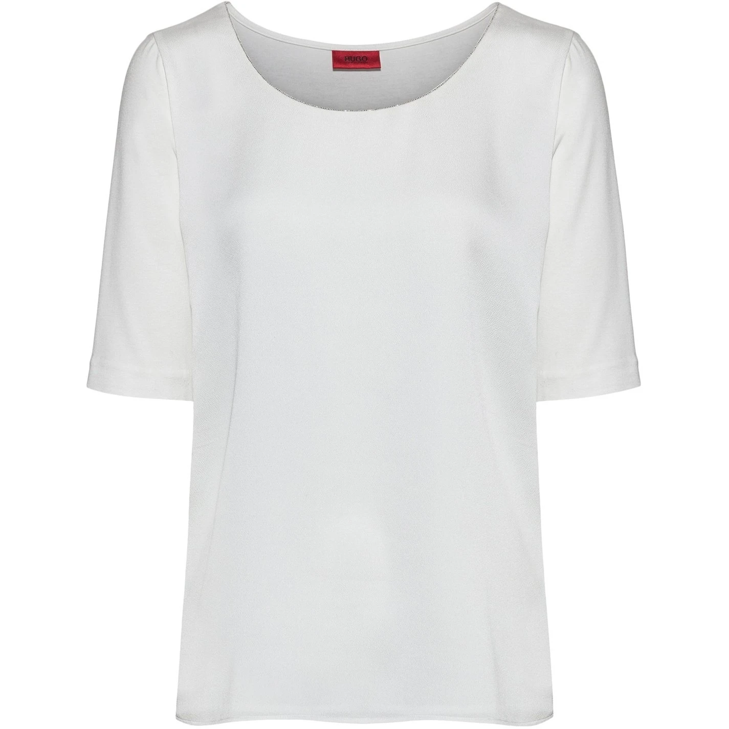Enhance your collection with this HUGO Dresselie T Shirt. Constructed with short sleeves and a crew neckline for a classic look, it features elasticated hems for a comfortable fit. This t shirt is a solid colouring throughout and is complete with HUGO branding.