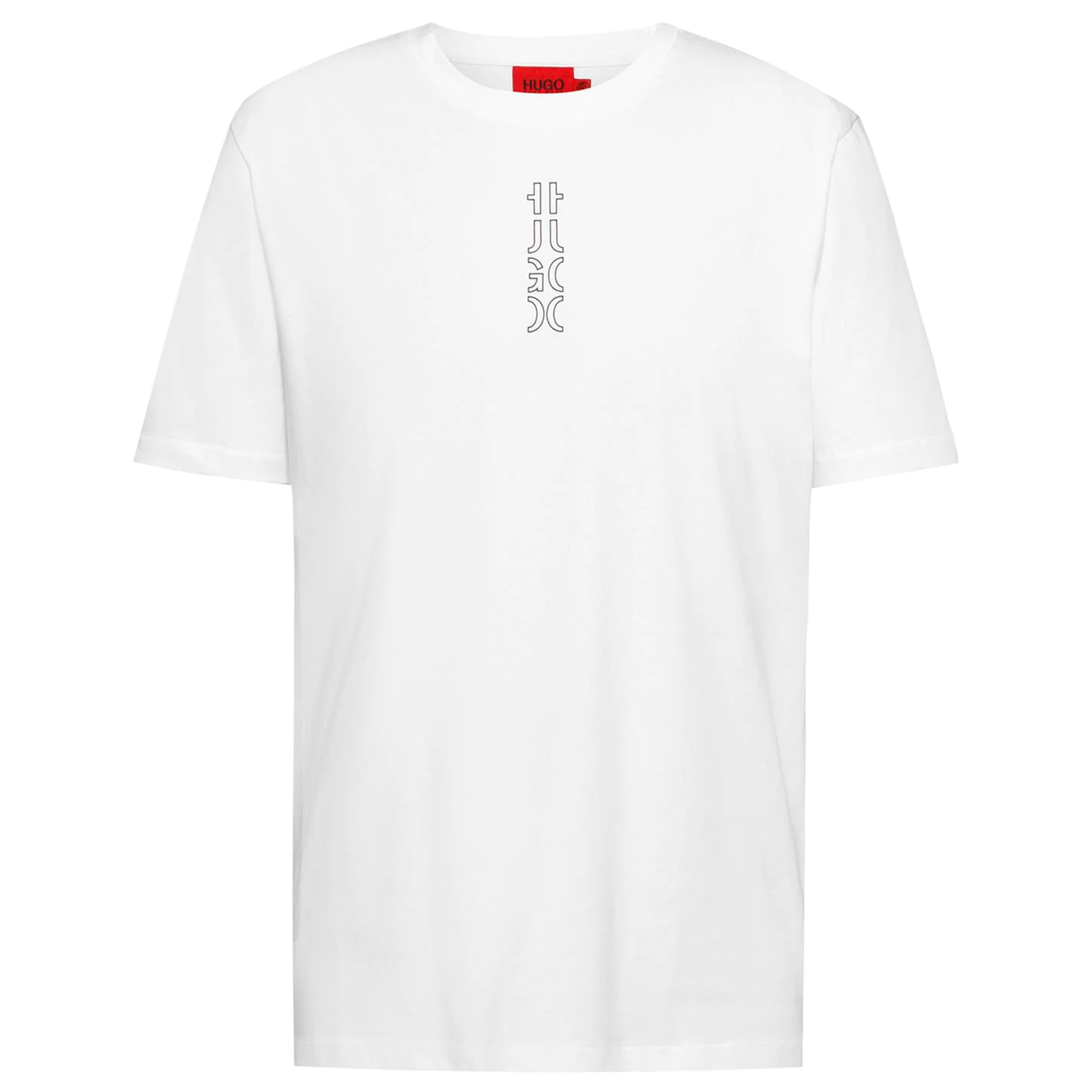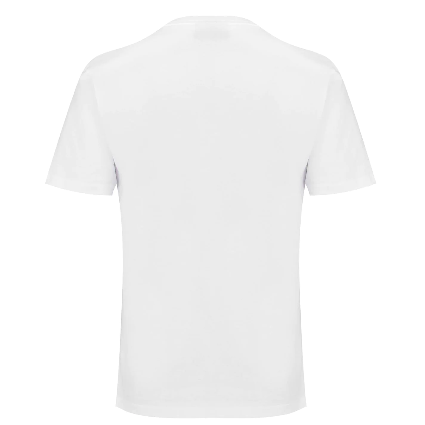 Cut in a short sleeved style with a rib knit crew neck collar, this simple t shirt will become a go to for your every day casual wear. Crafted with a pure cotton construction, the t shirt comes styling a large split mirrored logo to the torso for a bold designer look and block colouring throughout for a minimalistic aesthetic and easy casual styling.