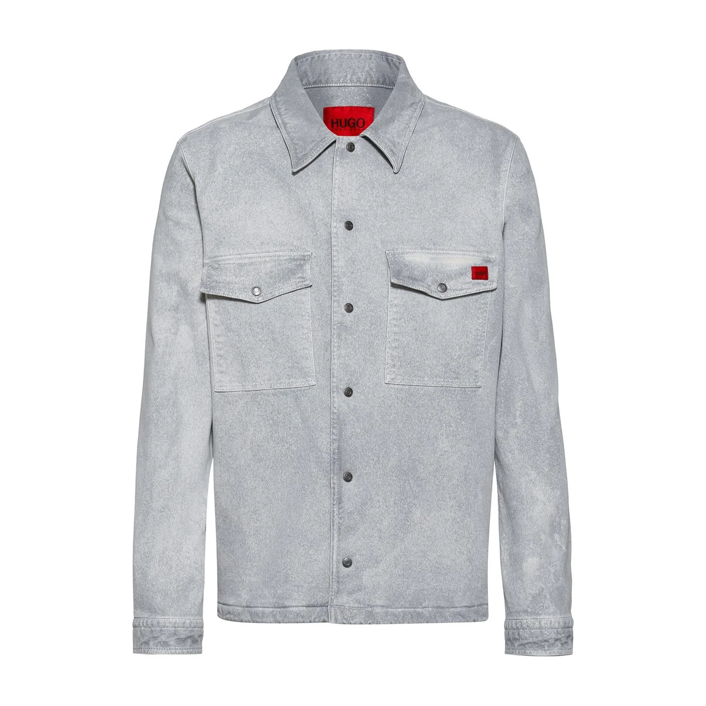Enhance your collection with this HUGO Enalugd Overshirt. Constructed with a folded collar and central button fastening for a secure fit, it features long sleeves and two chest pockets for a classic look. This overshirt is designed with a signature logo and is complete with HUGO branding.