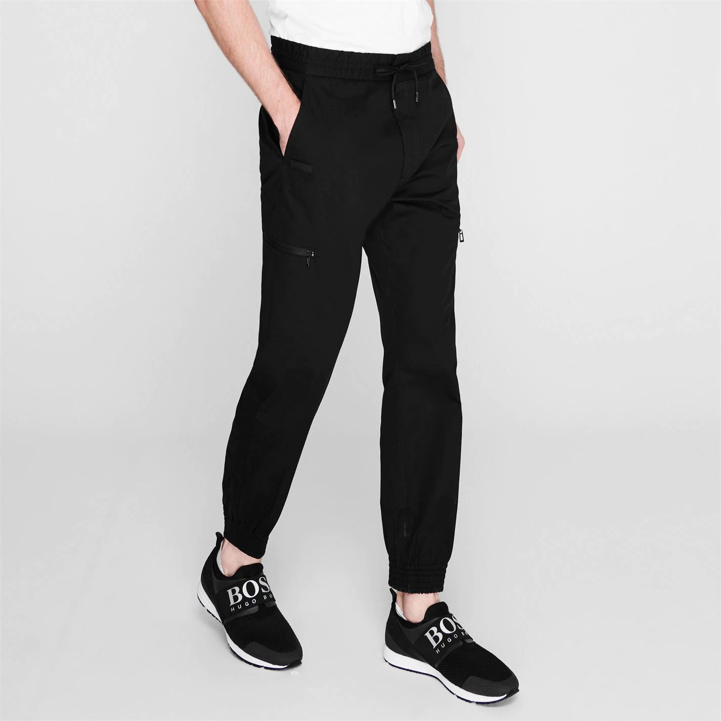 Refresh your collection with these Hugo Feril Jogging Pants. Constructed with an elasticated waistband and drawstring fastening, they feature ribbed cuffs and 2 pockets for a classic look. These joggers are designed with a signature logo and are complete with Hugo branding.