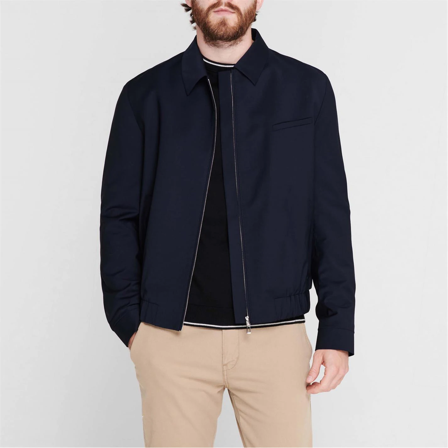 Crafted from Wool, Polyester and Elastane, the Hellis Blazer from Hugo Boss is the perfect piece to finish your smart attire. Designed in a block colour finish throughout, this classic and sophisticated piece resembles a bomber style silhouette, featuring a pointed collar, elasticated trims and a full zip fastening. The perfect layer for smart casual occasions.