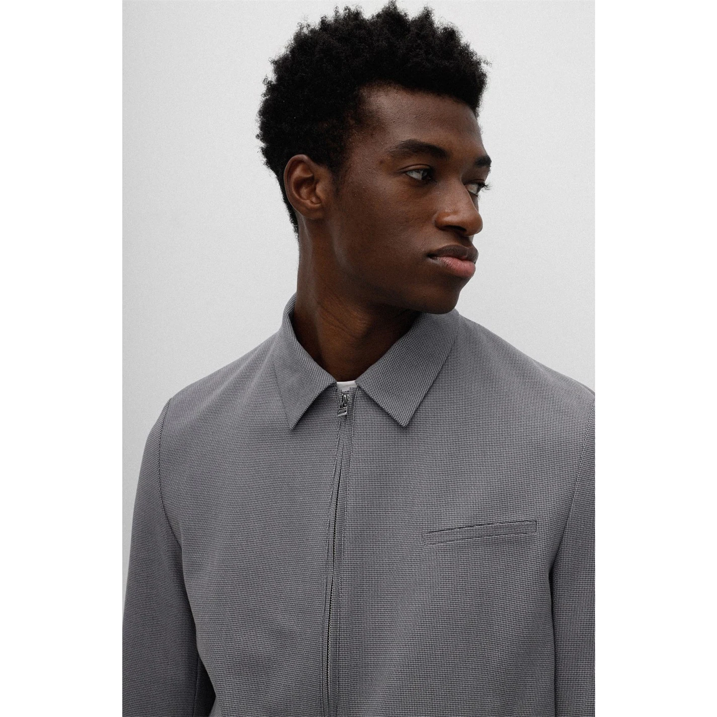 Refresh your collection with this HUGO Hellis Jacket. Constructed with a fold over collar and full zip fastening for a secure fit, it features long sleeves with comfortable ribbed cuffs and three pockets for a classic look. This jacket is a solid colouring throughout designed with a signature logo and is complete with HUGO branding.
