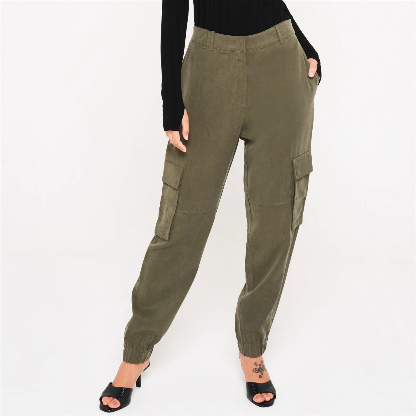 Update your smart-casual attire with the Hisaka Tapered Trousers from Hugo Boss. Crafted from a soft Lyocell fabrication, this tapered fit silhouette styles a solid block colour with a cargo style design for a staple wardrobe addition. With elasticated cuffs for a comfortable fit, these trousers style a hook fastening, zipped fly and belt loops to the elasticated waistband complete with four slip pockets. these trousers are perfect to pair with a sweater and trainers for a casual look.
