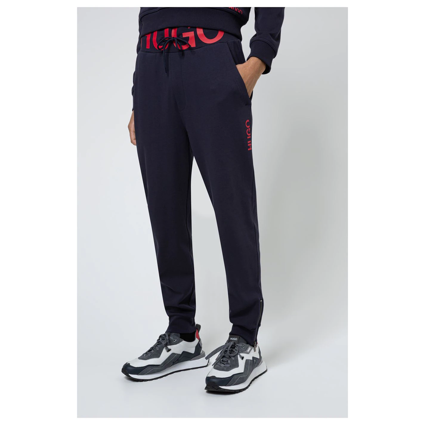 Switch up your casual joggers collection with the Duros Joggers from Hugo Boss. These quality joggers have been crafted in a regular fit with an elasticated waistband and adjustable drawstring, providing a more personalised, secure fit. The look is completed with block colour throughout and the iconic Hugo Boss branding displayed on the waistband.