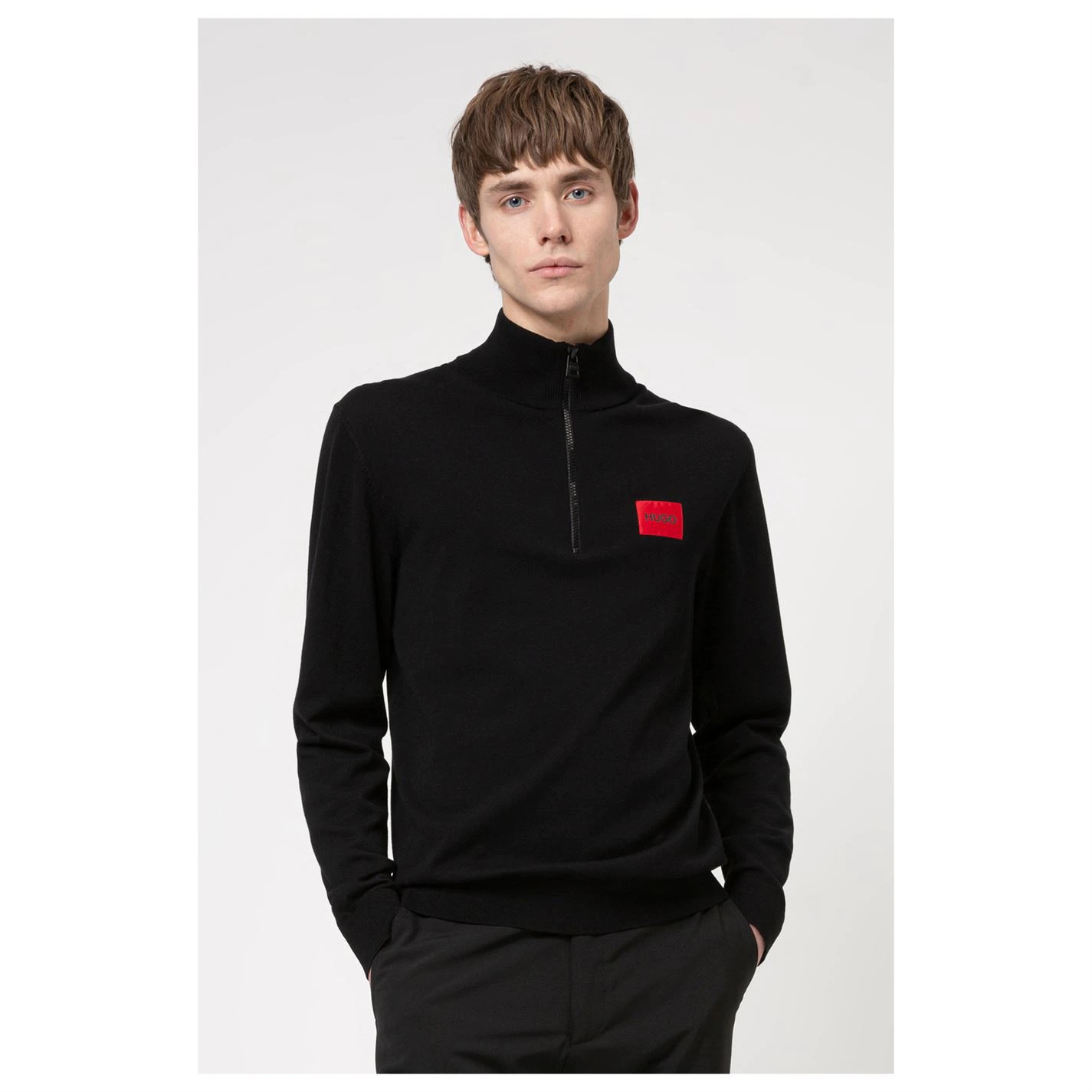 The Hugo Giuseppe Quarter Zip Jumper is a fantastic addition to your casual wardrobe, featuring a lightweight construction with a quarter length zip fastening along with a ribbed trim to the hem and wrist cuffs for a comfortable fit, tonal stitching and the Hugo branding completes the look, a must have piece for any casual look.