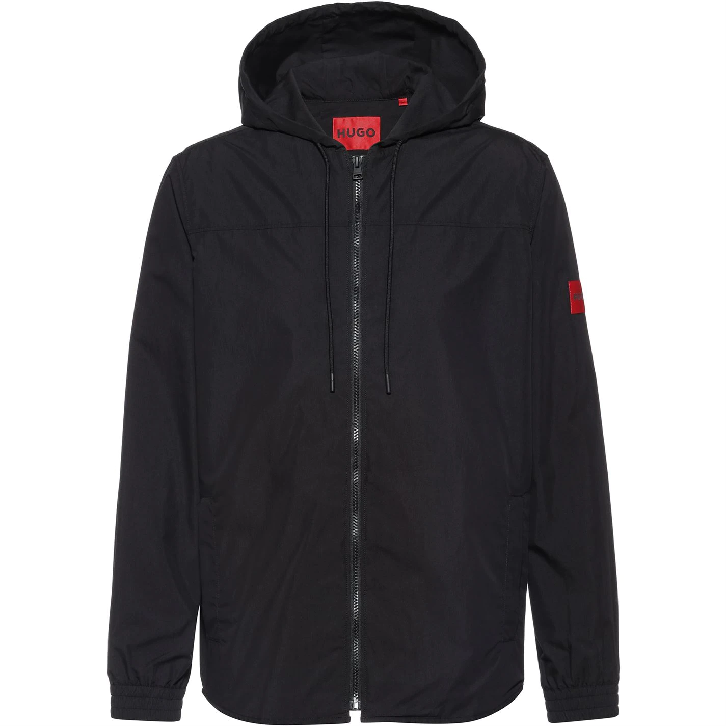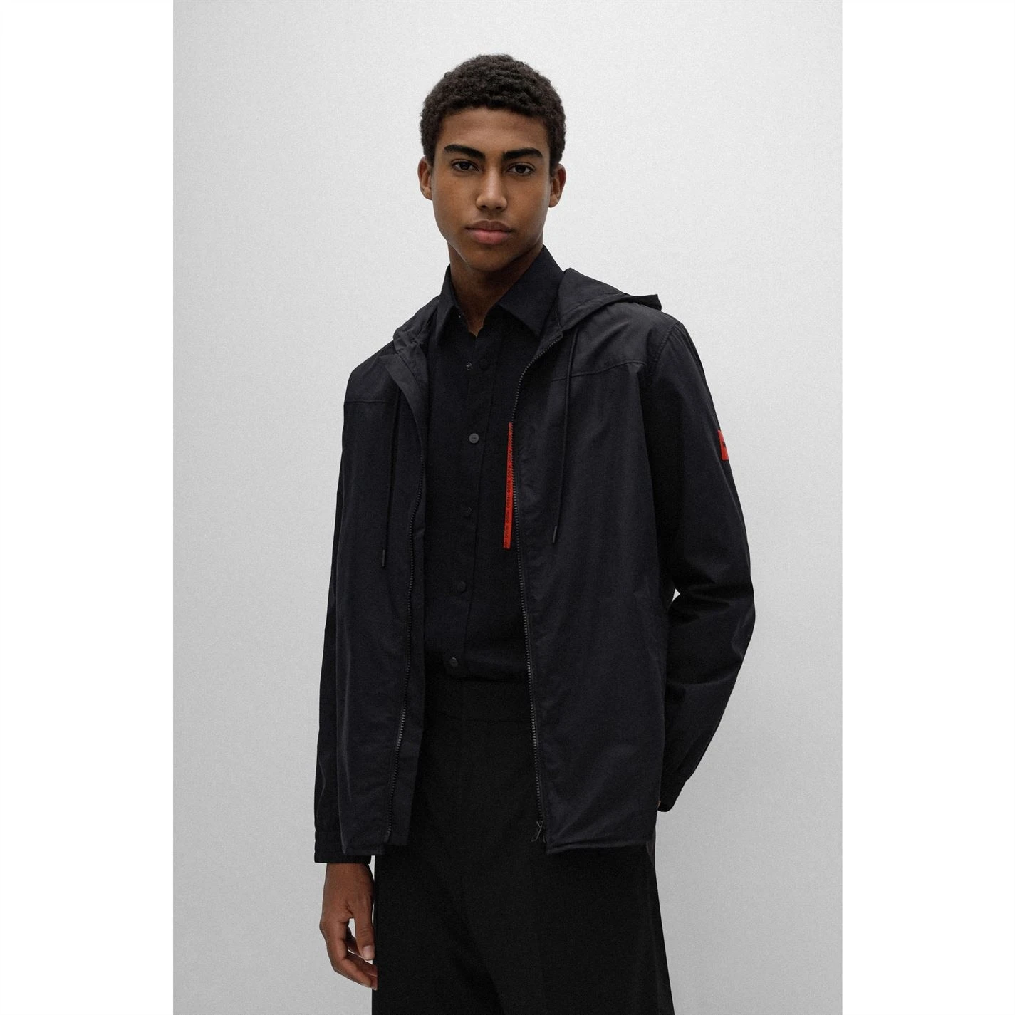 Perfect for laying during the transitional seasons, the Ebindo Zip Jacket from Hugo Boss has been crafted from a premium cotton-blend fabrication boasting a staple black colourway perfect for styling. With a drawstring hood, side pockets, full zip fastening and elasticated cuffs to the long sleeves, this regular fit silhouette is complete with the instantly recognisable Hugo Boss logo accented to the upper sleeve for a designer touch. Style yours with cargo trousers and trainers.