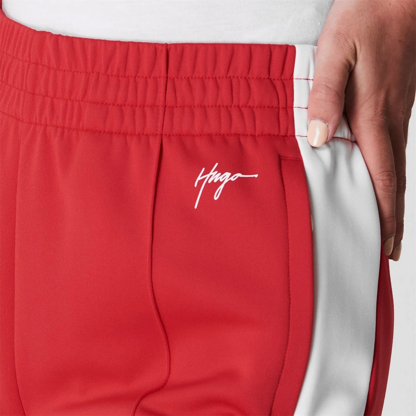 Elevate your collection with these Hugo Nanini Jogging Pants. Crafted with an elasticated waistband and drawstring fastening, they feature 2 side entry pockets for a classic look. These joggers are designed with a signature logo and are complete with Hugo branding.