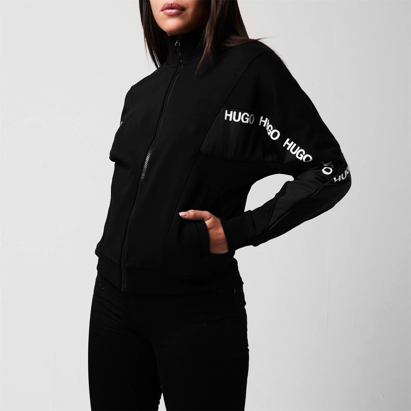 Refresh your collection with this Hugo Narnie Zip Top. Constructed with full zip fastening and long sleeves for a classic look, it features ribbed trims for comfort and 2 pockets for storage. This jacket is designed with a signature logo and is complete with Hugo branding.
