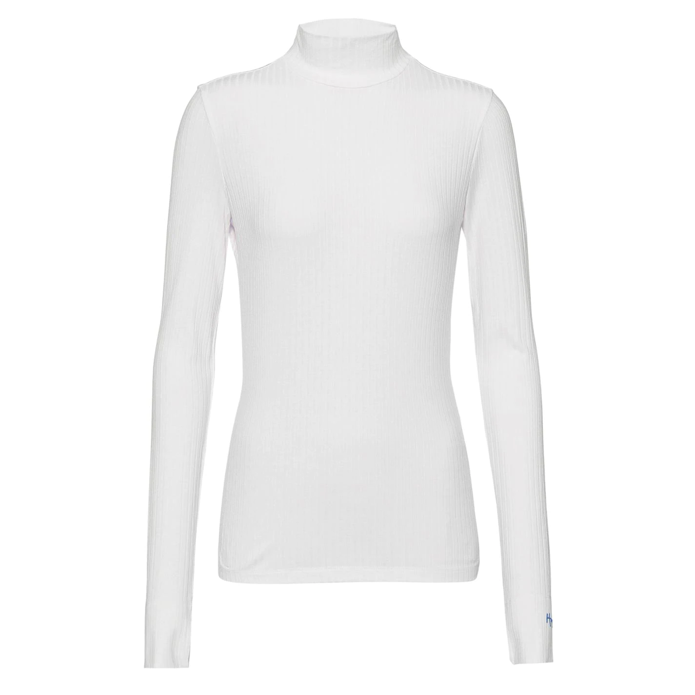 Elevate your collection with this HUGO Ninelli 2 Logo Top. Crafted with long sleeves and a ribbed high neck for a classic look, it features elasticated hems for a comfortable fit. This top is a solid colouring throughout and is complete with HUGO branding.