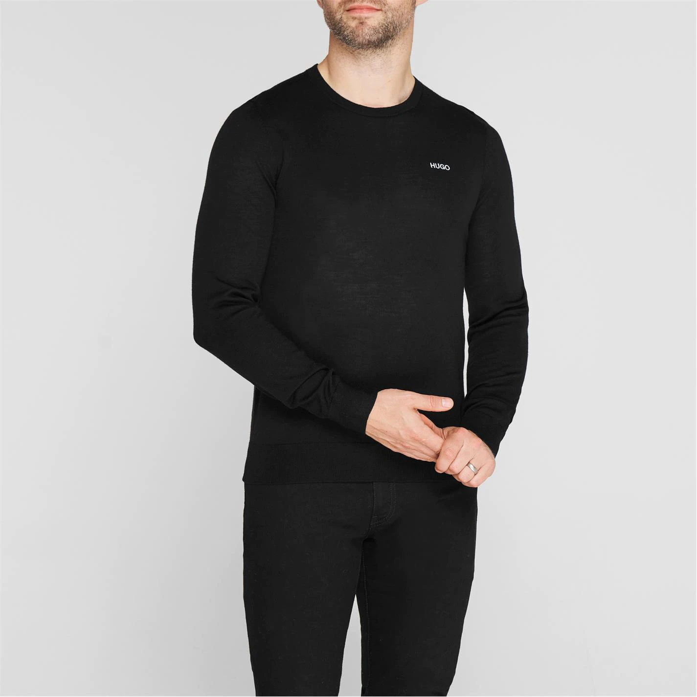 Update your knitwear collection with the Hugo San Lorenzono Jumper. A lightweight wool blend with long sleeves and a crew neckline to help achieve a classic look. Style with a traditional collared shirt underneath for your formal occasions. The design is complete with embroidered Hugo branding at the chest.