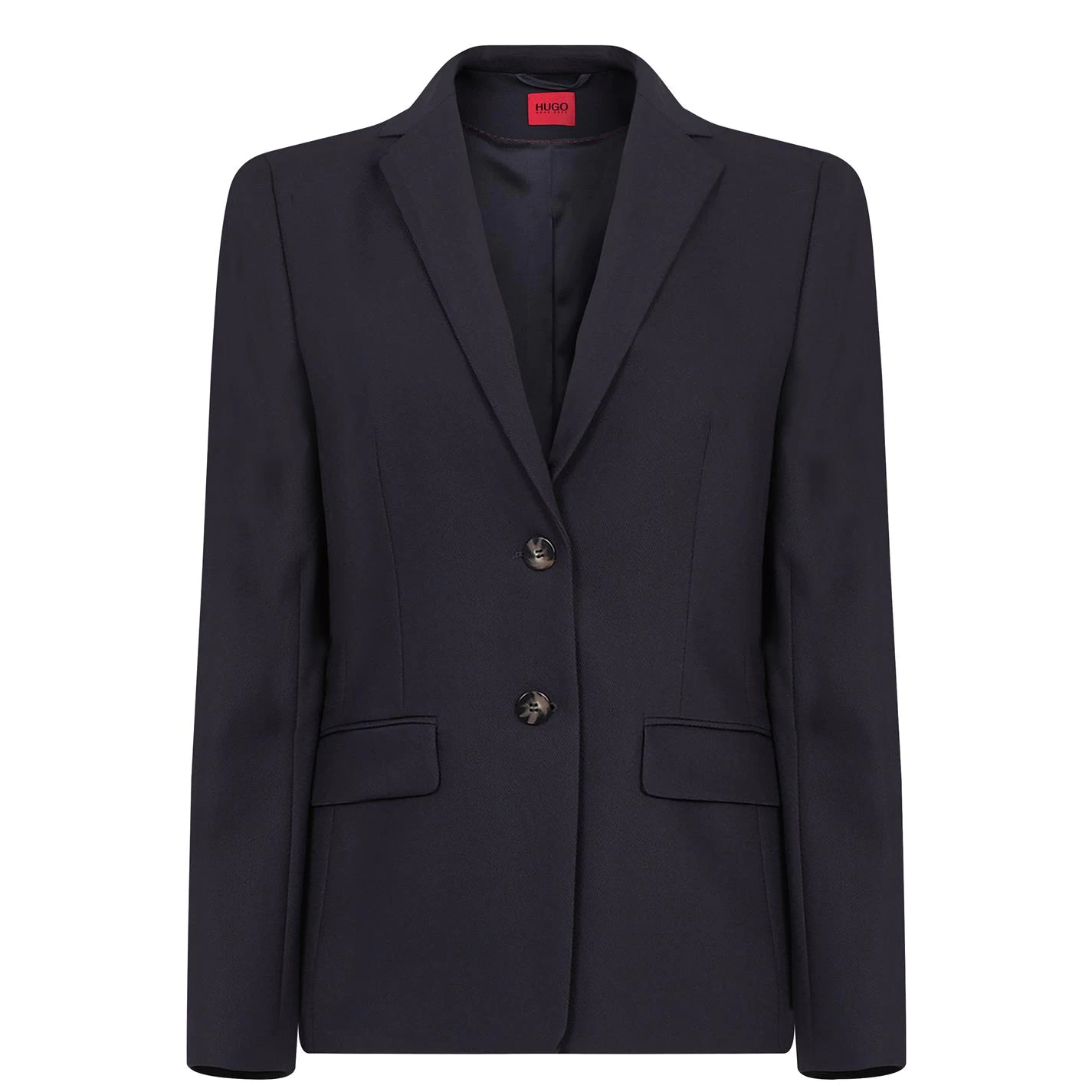 Elevate your collection with this HUGO Shoulder Pad Jacket. Crafted with a notch lapel collar and button closure for an easy wear, it features long sleeves with shoulder pads and two hand pockets for a classic look. This jacket is a solid colouring throughout and is complete with HUGO branding.