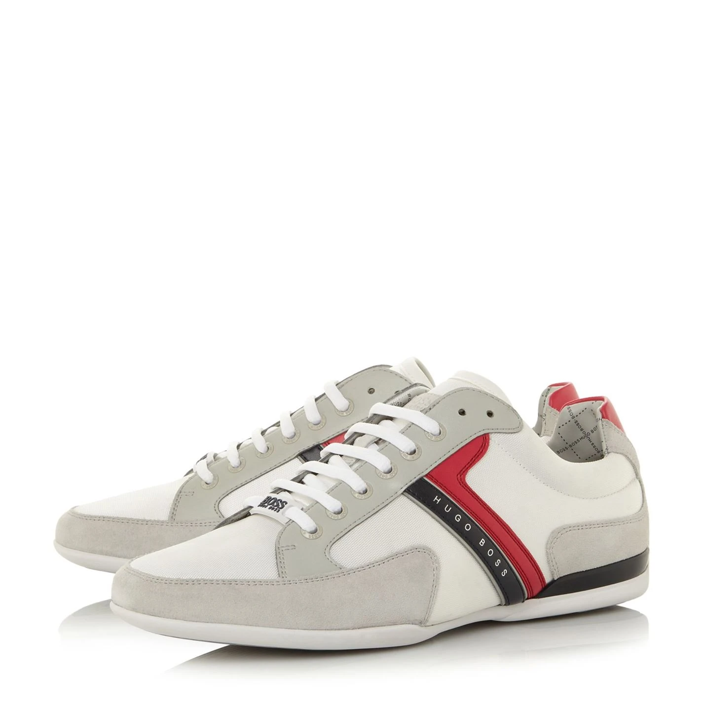 Inject laid-back cool into your casual look with this mix material trainer. Features colour pop accents lace up fastening and Hugo Boss branding. Wear with bootcut jeans and a graphic tee to complete the look.