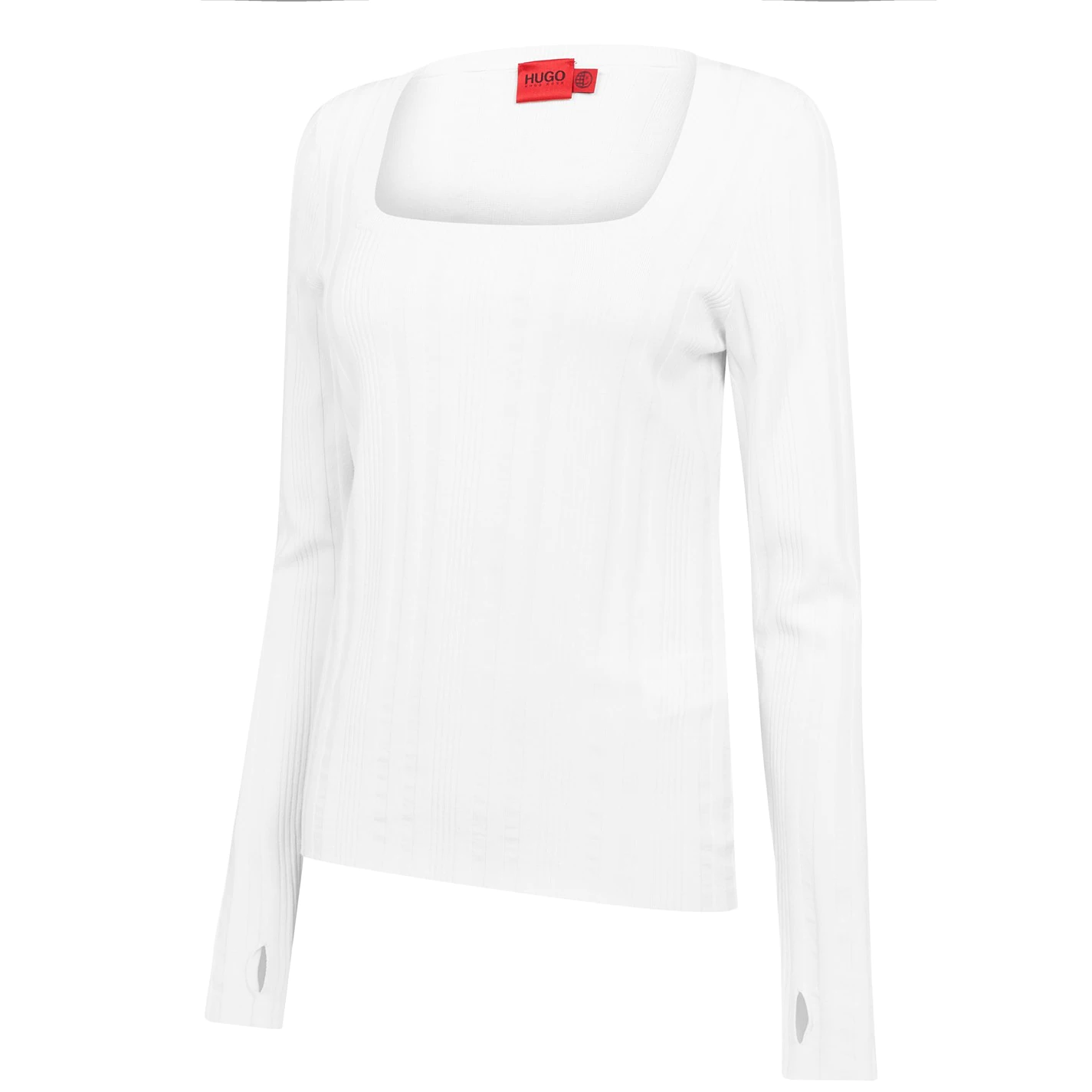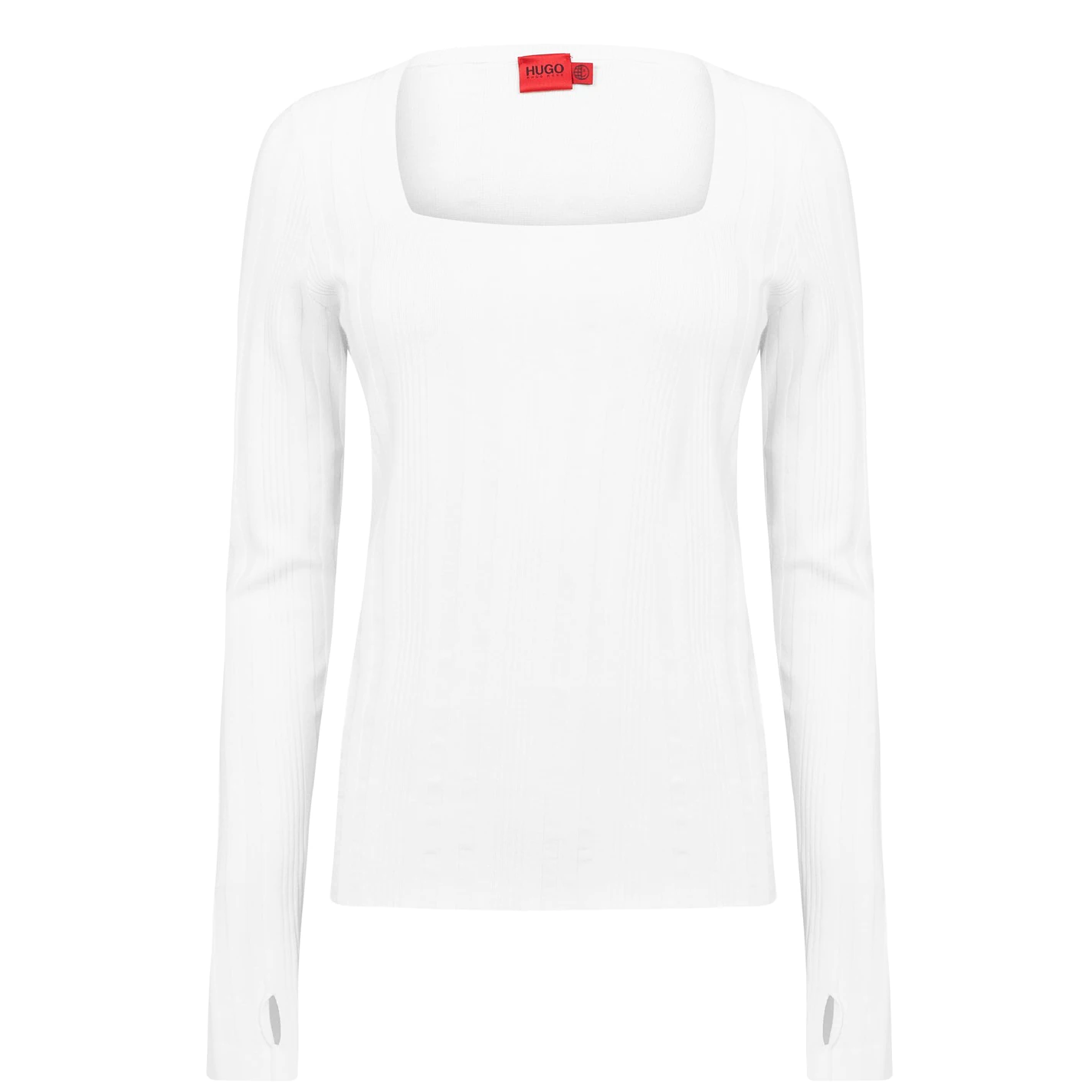 Elevate your everyday staple collection with this Steffany Jumper by HUGO, crafted from a mix of viscose and polyester fabrication. This elegant long-sleeved jumper features an all over ribbed design with a square neck-line. Material, 70% viscose, 30% polyester. Machine washable at 30 degrees.