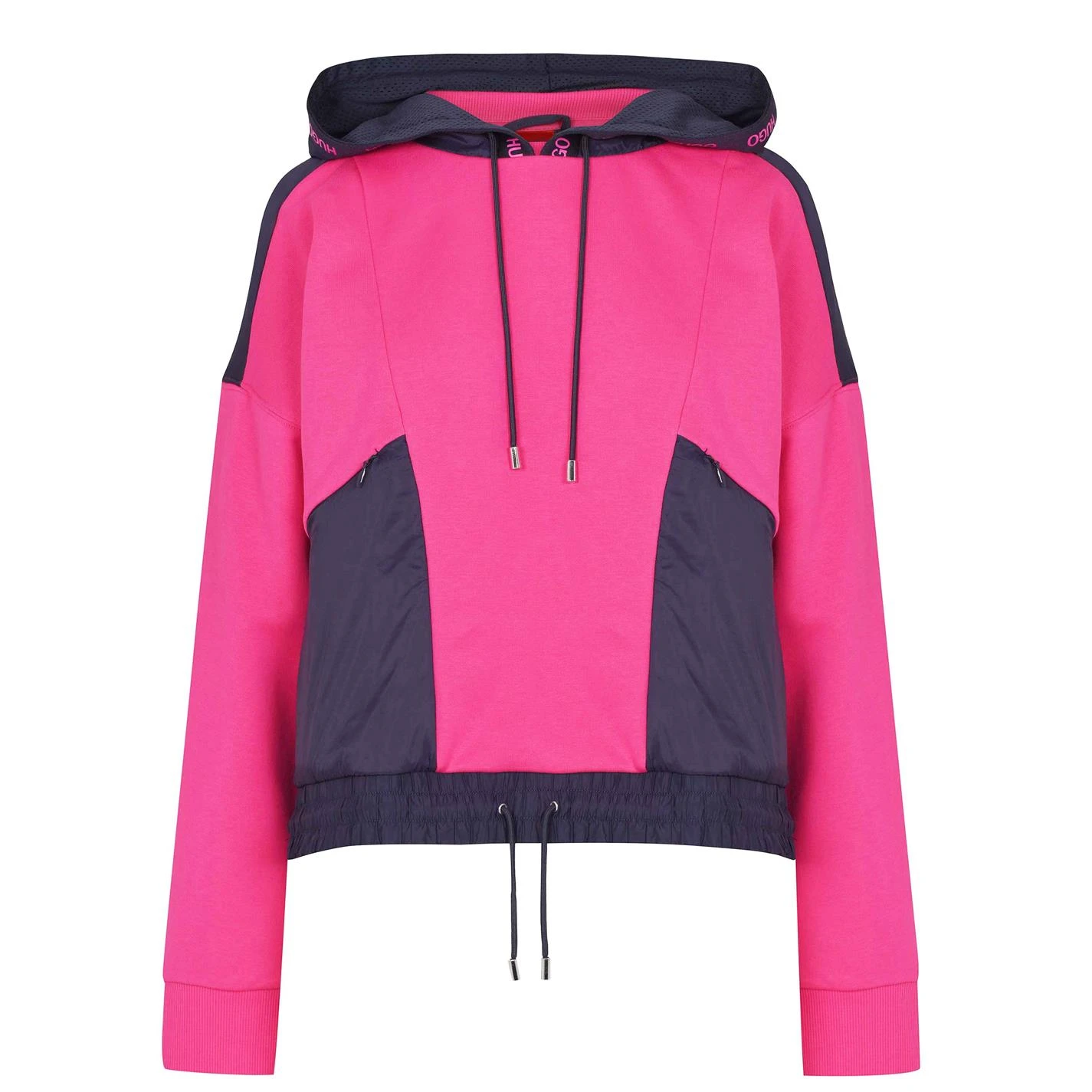Refresh your collection with this Hugo Tape Crop OTH Hoodie. Constructed in an over the head style with long sleeves and elasticated trims for comfort, it features a hooded neckline and bottom hem with drawstring adjustment for a versatile look. This hoodie is a colour block design with a signature logo and is complete with Hugo branding.