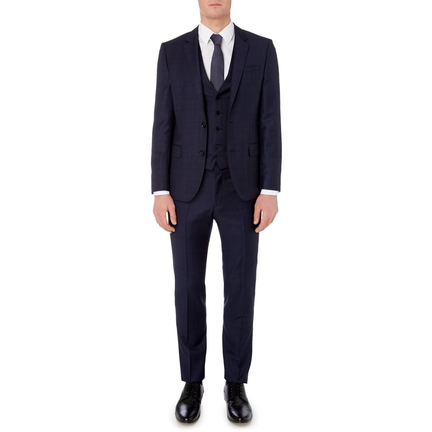 When it is essential to impress, look no further than this Vin slim check three piece suit waistcoat from Hugo Boss. Crafted from pure virgin wool in a single breasted design, it is secured with front button fastening for easy wear. Fitted with pockets, it is finished with an adjustable back fastening for added class. Team with the matching suit for a suave outfit.